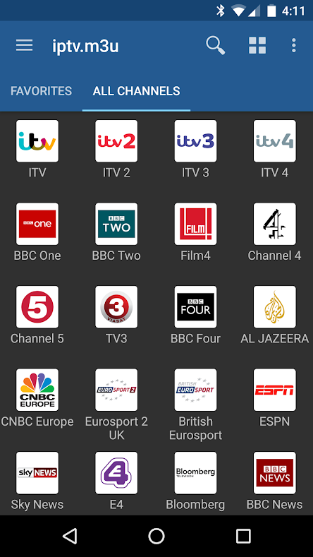 Watch IPTV from your Internet service provider or free live TV channels from any other source in the web.